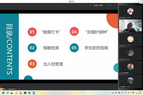 同学们,在疫情这场长期的阻击战中,我们必须要团结起来,基层党组织全部行动起来,听党指挥。本次会议着重强调落实每日健康打卡、坚持好非必要不出京、非必要不出校、在校内自觉佩戴口罩等措施的重要意义,有助于同学们严格遵守疫情防控要求,认真配合做好健康打卡等相关工作,用实际行动共同创建安全稳定的校园环境。