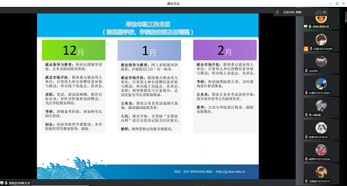 于2023年寒假期间,各毕业班召开毕业生就业主题班会,由毕业班班主任牵头,全体本科毕业班同学参加会议。