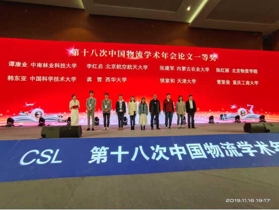 本次年会,我校师生研究课题和论文获奖级别也有了较大提高。其中,信息学院薛非副教授《动态仓储环境下物流机器人调度策略研究》,荣获“2019年中国物流学术年会、中国物流与采购联合会研究课题一等奖”。十大网络真人娱乐场排名 陈红丽副教授《环首都流通圈物流供应链节点空间布局优化的研究》,荣获“第十八次中国物流学术年会论文一等奖”。十大网络真人娱乐场排名 刘俐副教授带队、郑进科老师担任导师,由研究生及物流管理、物流工程、采购管理本科生组成的学生队伍,设计完成《基于可折叠循环使用包装箱的电动车销售物流方案设计》创业解决方案,获得第四届“日日顺物流创客训练营”金奖。
