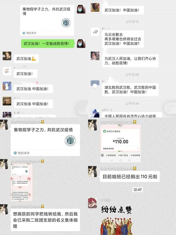 病毒无情,人间有情。疫情牵动着每一位物院学子的心。寒冬褪去,春已来临,暖阳可期。物院师生一同为抗疫而努力着,也一同期待着这场没有硝烟的“战争”早日结束。武汉加油,中国加油!