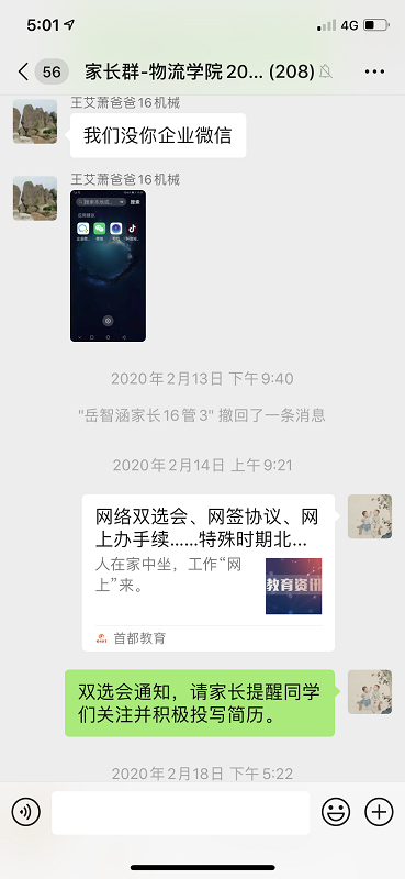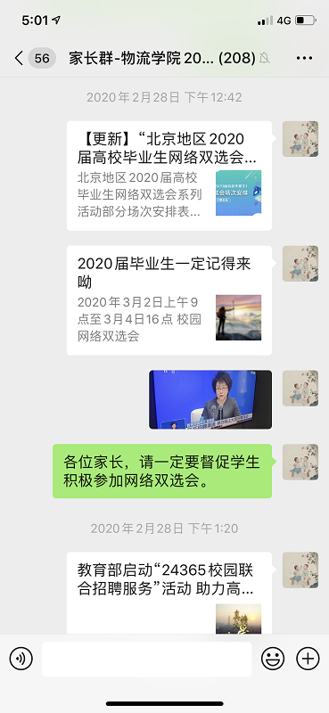 建立2016级家长群,积极向家长推送就业信息,对个别找工作不积极的学生和家长进行逐一沟通,家长协助共同进行就业督促,在就业过程中共同给予学生帮助和指导。