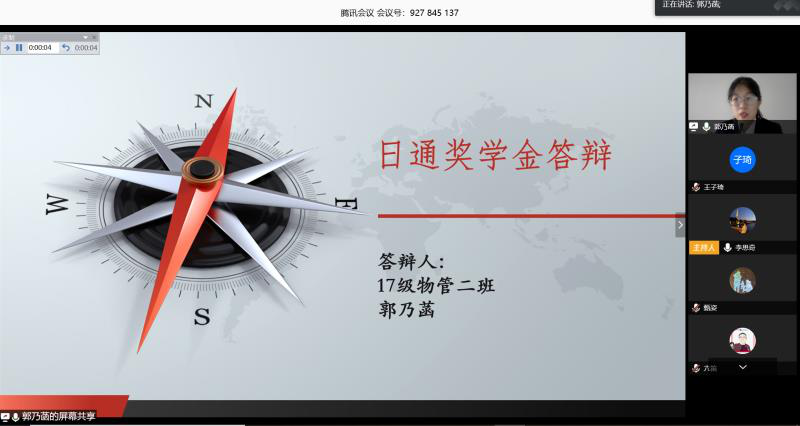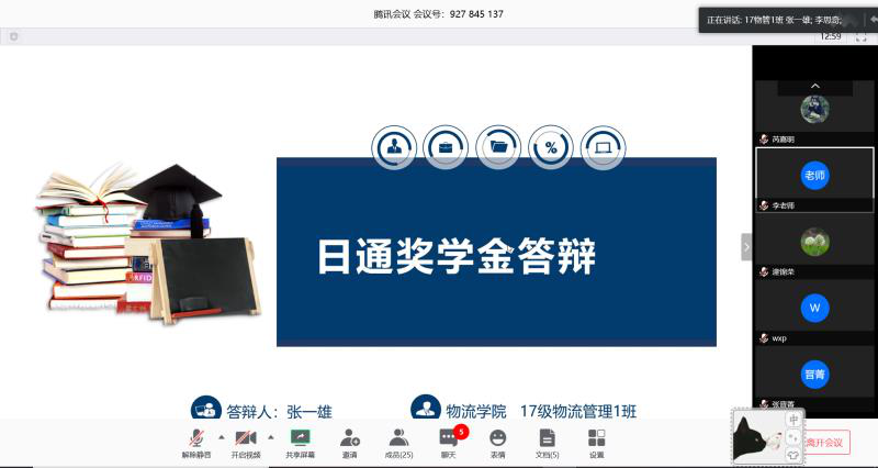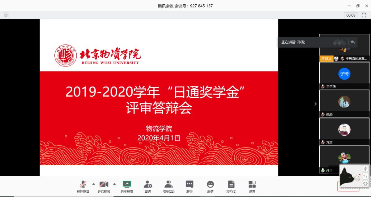 在腾讯会议召开了2019-2020学年“日通奖学金”线上评审答辩会,此次共有20位候选人进入线上答辩环节,十大网络真人娱乐场排名