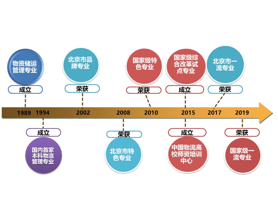 物流管理专业拥有辉煌的发展历史,前身为1989年设立的物资储运管理专业。1994年,物流管理专业正式成立,是国内最早进行物流管理专业招生的高校之一。历年来获得国家及北京市多项品牌及特色专业荣誉,累计培养毕业生2000余人。多年来,一直引领和推动着我国物流教育的创新和发展。