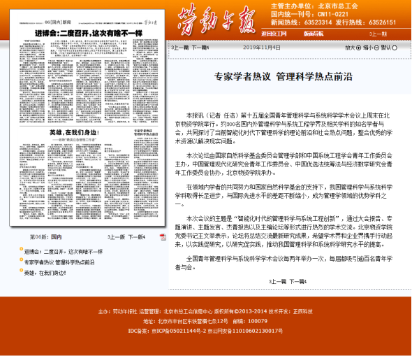 本报讯(记者 任洁)第十五届全国青年管理科学与系统科学学术会议上周末在北京物资学院举行。约300名国内外管理科学与系统工程学界及相关学科的知名学者与会,共同探讨了当前智能化时代下管理科学的理论前沿和社会热点问题,整合优秀的学术资源以解决现实问题。