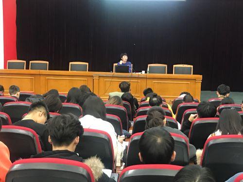 接着她指出,身为一名共产党人应首先本着为人民服务的宗旨,时刻以高标准、严要求去约束自己。身为入党申请人还要了解入党积极分子、预备党员等一些基本概念,对于入党申请书的撰写,徐老师也做出了强调。其次徐小娟老师为同学们讲述了入党所需的几个步骤。她提醒同学们入党不仅需要成绩优异,更重要的是对于入党的态度,以及对社会主义和中国共产党的了解程度。并且将入党的各个阶段所面临的问题与对策进行了分析。要做到了解中国共产党的基本路线和中国共产党的指导思想,积极汇报思想工作,争做申请入党的积极分子。