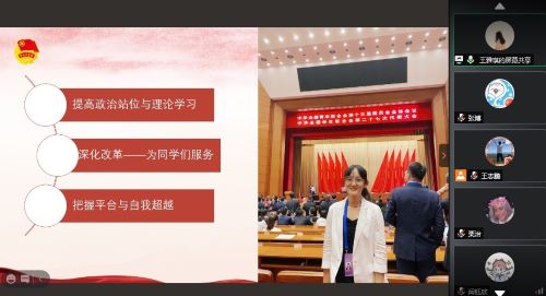 2018级研究生王雅琪同学向全体参会人员传达了全国青联十三届全委会、全国学联二十七大会议精神,并分享了自己的参会感悟。她表示,青联和学联工作是党的青年工作的重要组成部分,要为广大青年和青年学生增长才干、施展才华创造良好条件,并以同学们身边的故事为例,分析学联工作的重要性,认为学生组织要进一步加强组织建设,更好地服务同学思想成长需求和精神文化需求,助力同学全面发展。