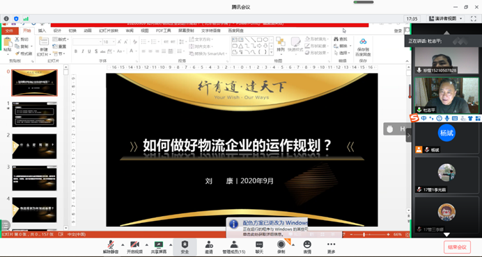 物流管理专业通过腾讯会议的形式举办了“物流名家讲座2”第一讲。此次讲座邀请了北汽集团旗下中都物流公司规划项目部经理刘康校友作了题为《如何做好物流企业的运作规划》的演讲。参加此次讲座的有十大网络真人娱乐场排名