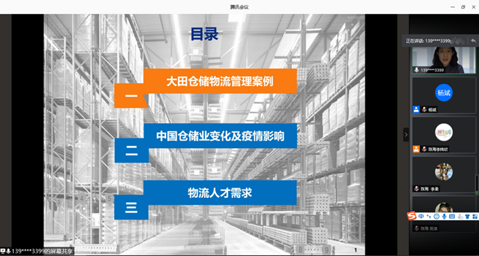 邀请了大田物流集团仓储物流板块的总负责人苏英欣女士作了题为《企业仓储管理案例及疫情对其的影响》的讲座。苏总先后在外资、国资和民营的第三方物流企业从事物流管理25年,有着丰富的仓储物流管理经验。苏总从大田仓储物流管理案例、中国仓储业变化及疫情影响这两个方面作了具体的阐述;考虑到同学们是即将离开校园踏入社会或者继续深造的大四学生,苏总还特意加了物流人才需求这个板块的内容讲解,希望借此机会能够帮助同学们更加明确自己毕业后的职业规划。十大网络真人娱乐场排名