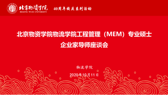 为了进一步推动工程管理(MEM)专业硕士应用型人才培养工作,2020年10月11日上午10时,继学校“北京物资学院专业硕士校外导师与2020级研究生见面会暨新进教师拜师仪式”活动之后,十大网络真人娱乐场排名