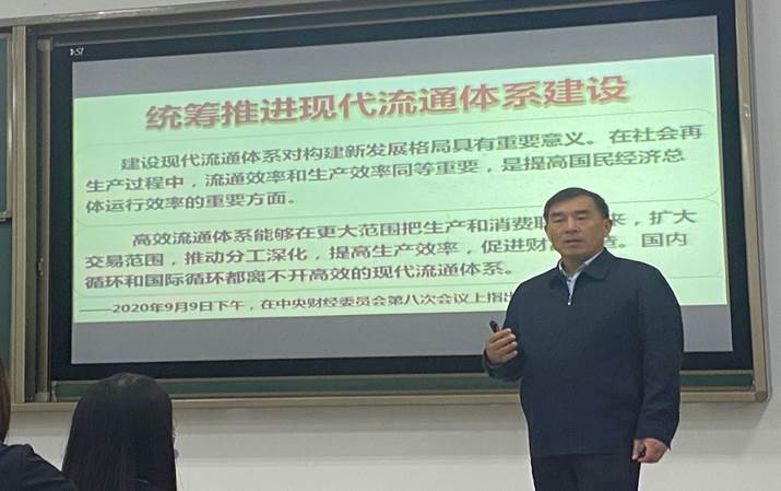 何院长着重介绍流通在双循环中的重要地位,建立现代流通体系,将生产和消费联系起来,深化供给侧结构性改革,提高国民经济总体运行效率。国内循环和国际循环都离不开高效的现代流通体系。何院长分析改革开放前我国单循环和改革开放后的双循环,以及目前百年未有之大变局的双循环三者之间不同之处。何院长与同学们之间的互动引发了同学们的深刻思考。
