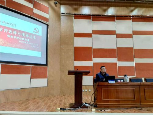 本次党课的主题是“信仰选择与境界追求”。讲座一开始,孙老师用亲身经历和身边人每日勤勉工作的例子,向同学们阐释了人生价值和境界追求的真正含义。孙老师讲到我们作为社会和国家的未来,不应该局限于现在的得与失,而是应该有更高的境界追求。正所谓“有志者立长志,无志者常立志”,强调大家应该独立思考我们的人生价值是什么。