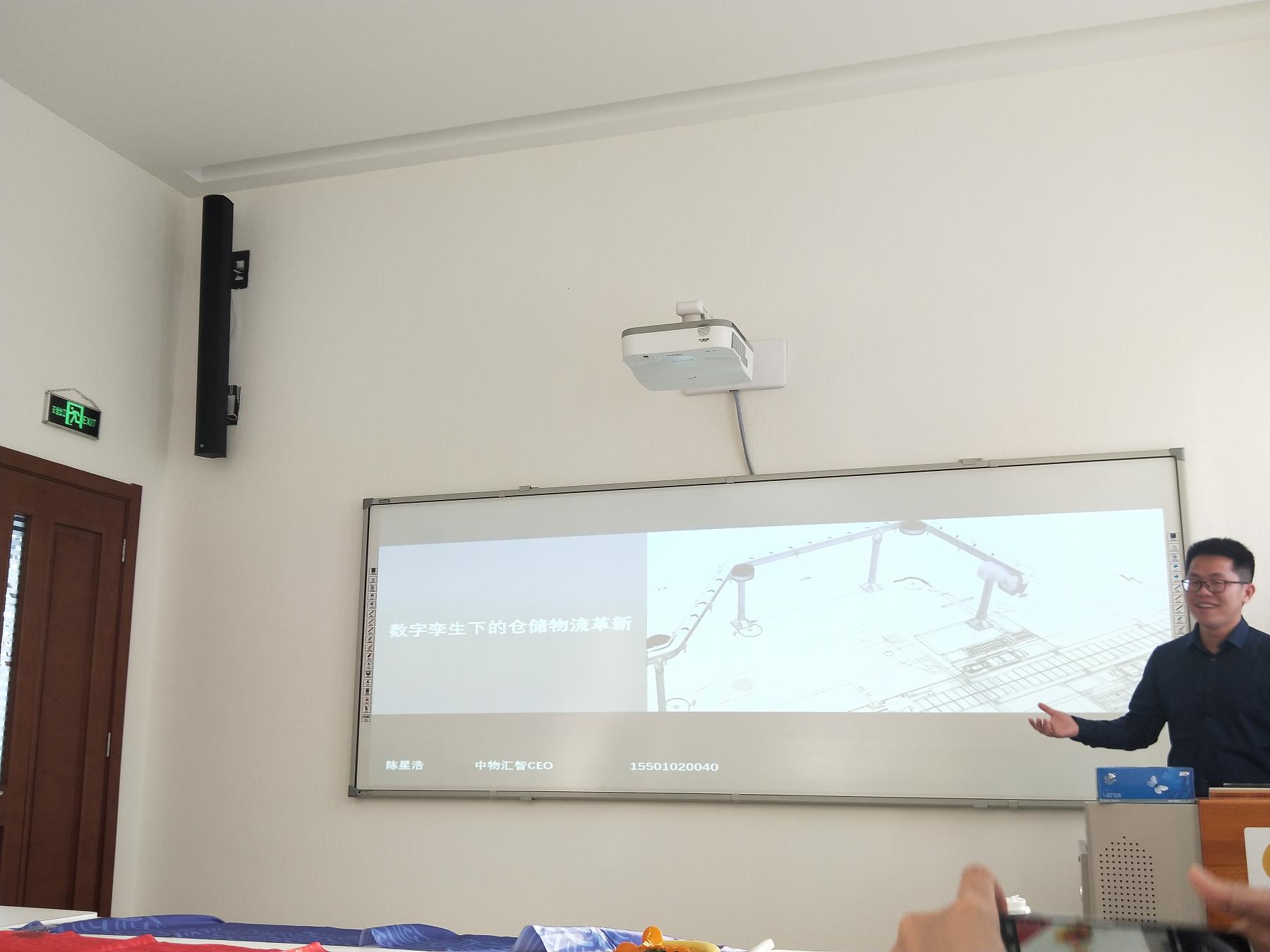 中场休息过后,由北京中物汇智科技有限公司CEO陈星浩校友进行了题为《数字孪生下的仓储物流革新》的演讲分享。演讲首先介绍了物流发展变革和智慧物流产业,随后介绍了物流数字孪生协作市场的现状和展示并讲解了它模拟工作的应用过程。同时也提出在该领域的不足之处和改进的建议。