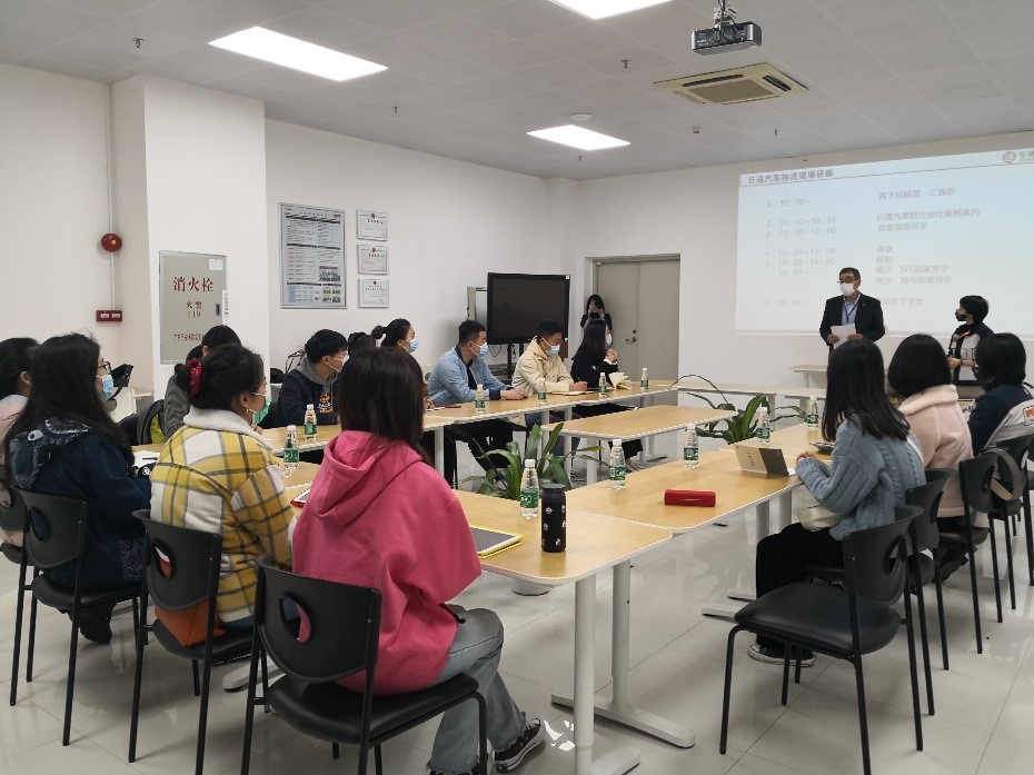 12月16日,同学们来到了日通汽车物流(中国)有限公司的枝山仓库和南沙仓库,日通汽车物流(中国)有限公司的森下总经理对物资学院师生的到来表示热烈欢迎并发表讲话。同学们通过此次机会对汽车物流的业务有了近距离的接触,也对日通公司的标准化管理有了深刻的印象,无论在办公区域还是在仓库都有可视化的看板并根据不同的商品类型设计标准化的包装方式。
