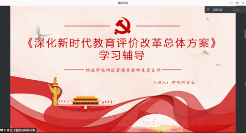 为深入贯彻党中央《深化新时代教育评价改革总体方案》的重要思想,2020年12月23日下午14:30,北京物资学院副院长何明珂为物流管理专业学生党支部讲授了主题为《深化新时代教育评价改革总体方案》学习辅导的专题党课。本次党课由物流管理专业学生第一党支部书记李思奇老师主持,十大网络真人娱乐场排名