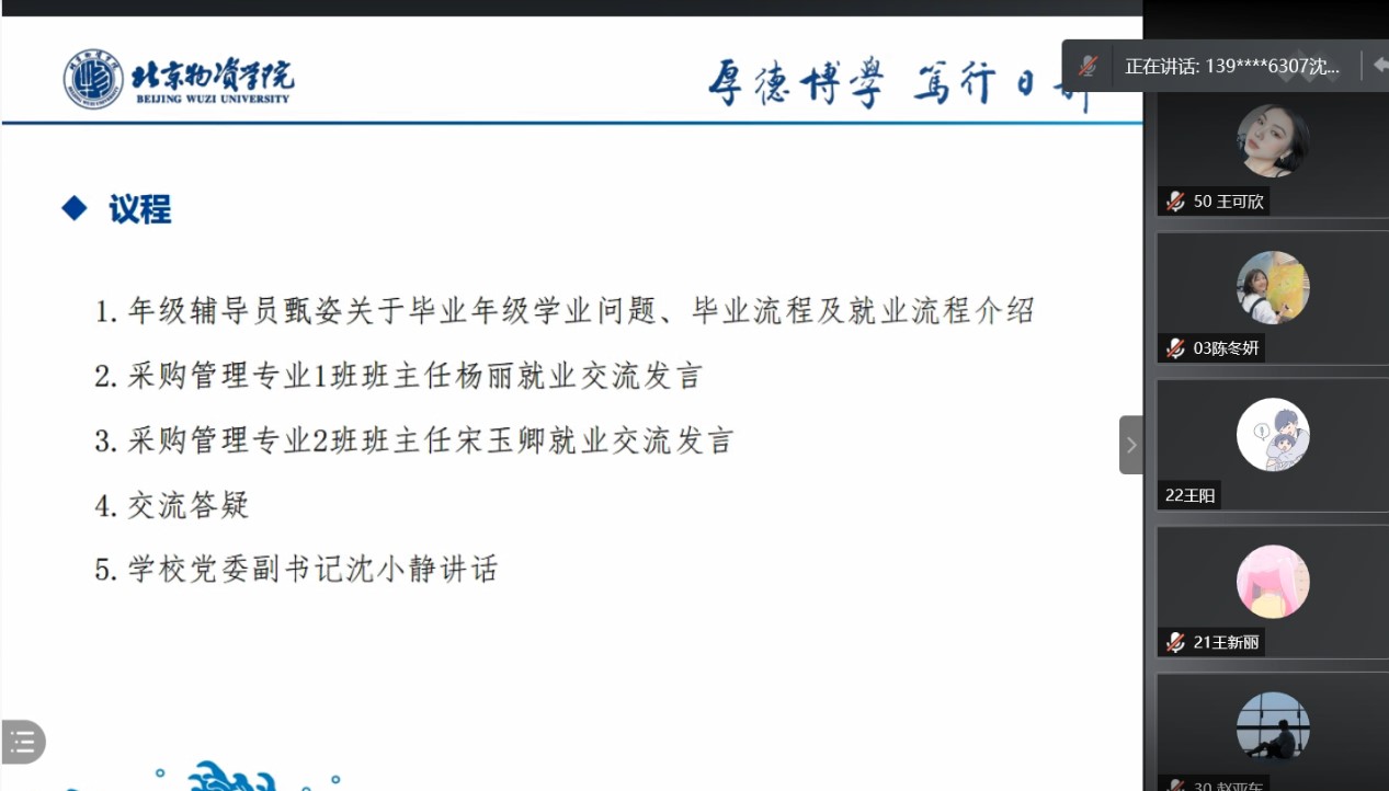 线上召开采购管理专业 “就业交流”主题班会。学校党委副书记沈小静、十大网络真人娱乐场排名