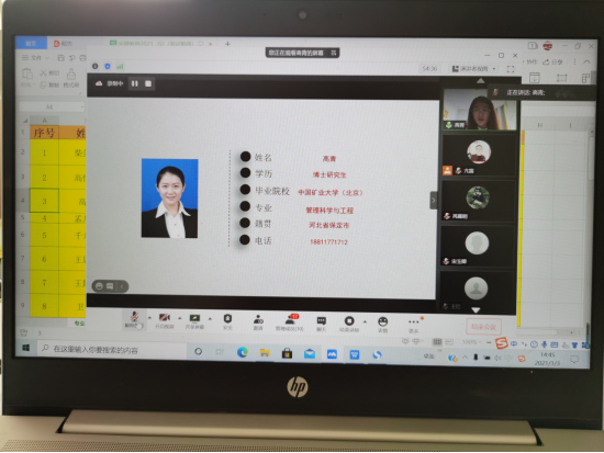 专任教师岗位的人才简历,并遴选符合应聘条件人员,最终确定时间开展试讲和面试。由于疫情影响,学院依然采用在线面试的方式开展公开招聘。