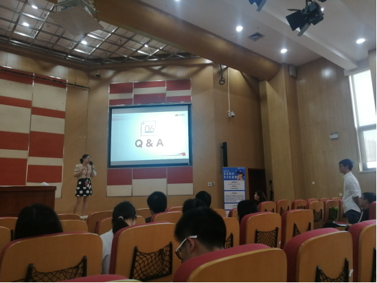 最后进行了答疑环节,场面热烈,互动和惊喜不断。京东物流培训部负责人对同学们的提问进行了详细耐心的解答并对答疑人员赠送礼品,同学们纷纷投递简历并进行面试,面试环节紧张而有序的进行。