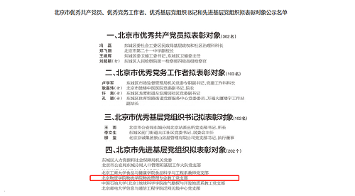 为隆重庆祝中国共产党成立100周年,2021年3月,北京市以市委名义开展了北京市优秀共产党员、优秀党务工作者、优秀基层党组织书记和先进基层党组织评选表彰工作。本次表彰活动全市教育系统共评出35个先进基层党组织,其中高校先进基层党支部仅6个。