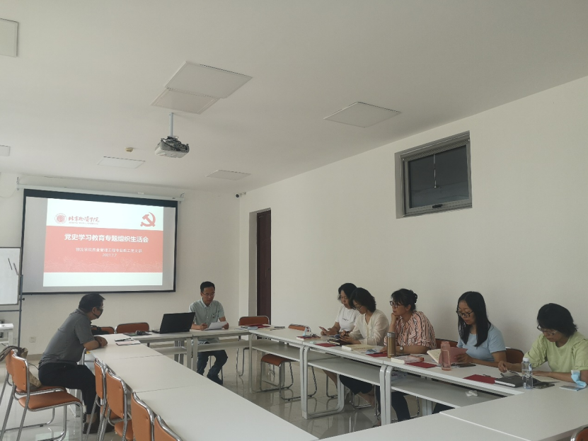 首先,党支部书记王国义代表党支部委员会向党员通报党支部组织党史情况,党支部对党史学习教育非常重视,学习分为分散学习与集体学习,党支部把习近平总书记在党史学习教育动员大会上的重要讲话,以及党中央制定的4本学习材料习近平《论中国共产党历史》、《毛泽东、邓小平、江泽民、胡锦涛关于中国共产党历史论述摘编》、《习近平新时代中国特色社会主义思想学习问答》、《中国共产党简史》,习近平总书记在庆祝中国共产党成立100周年大会上的重要讲话等学习材料发给党员自学,并召开专题会议,集体学习《榜样5》并交流研讨,支部书记做了党史学习专题分享交流。同时,支部广泛征集专业教师党员和工作服务对象的意见建议,以开展对外合作交流为工作重点,制定了面向学生、面向教师的实事清单,充分发挥党支部在专业建设中的引领作用。