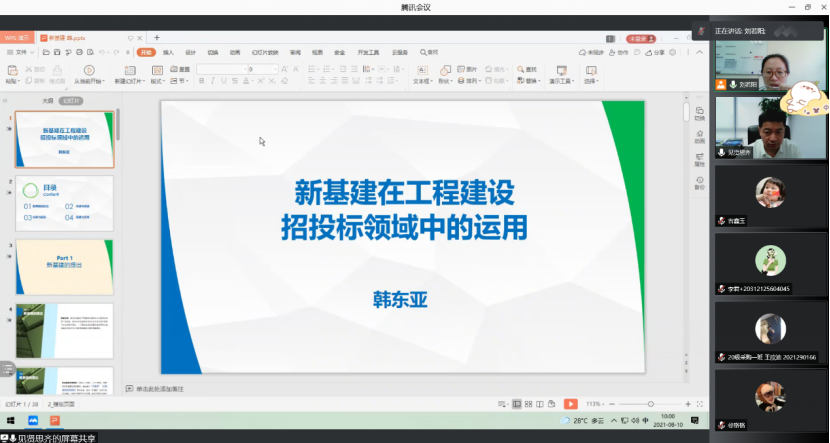 于2021年8月10日举办了“暑期名家系列讲座”第2讲,本次讲座邀请到了具有多年工程采购经验的教育部高等学校物流与工程教指委委员、中国物流学会副会长、安徽公共资源交易集团韩东亚总经理,围绕“新基建工程建设招投标领域中的运用”主题进行专题介绍和专家解读。十大网络真人娱乐场排名