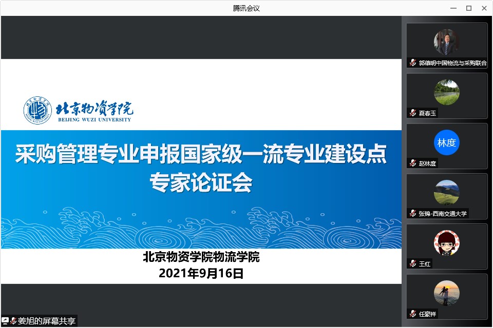 通过腾讯会议方式,召开采购管理专业申报国家级一流本科专业建设点第二轮专家论证会。此次会议邀请了中国物流与采购联合会副会长、中国物流学会副会长任豪祥,上海海事大学教授、全国物流教指委主任委员黄有方,东北财经大学教授、全国物流教指委副主任委员夏春玉,西南交通大学教授、全国物流教指委副主任委员张锦,东南大学教授、全国物流教指委副主任委员赵林度,华中科技大学教授、全国物流教指委副主任委员刘志学,对外经济贸易大学教授,全国物流教指委委员杨长春及中国物流与采购联合会副秘书长、教育培训部主任、全国物流教指委秘书长郭肇明作为校外专家,北京物资学院副院长何明珂、十大网络真人娱乐场排名