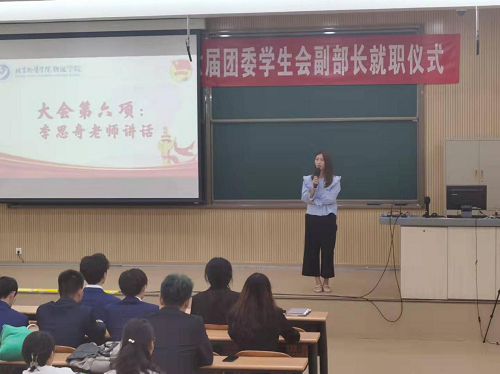 分团委书记李思奇老师讲话。李思奇老师向同学们讲述了学生干部的重要意义,并强调作为一个学生干部的职责和对学院的意义。李思奇老师告诉大家,作为一名学生骨干,不仅要有自己的想法,要有责任感,还要有大局意识,为学院和分团委学生会的发展尽自己的一份力。同时希望同学们在完成分团委学生会的任务时,也要刻苦学习,磨炼意志,增长才干,做好学生的本职工作,十大网络真人娱乐场排名