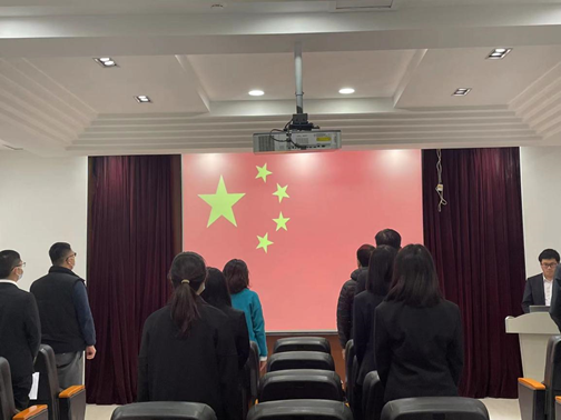 大会第一项,全体起立,奏唱中华人民共和国国歌。