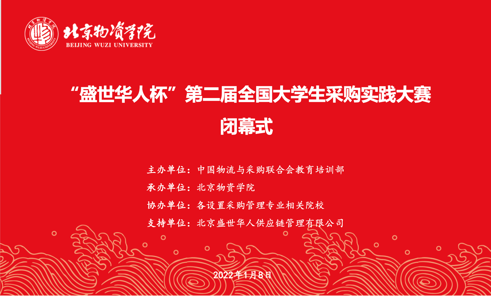 2022年1月8日,通过线下+线上腾讯会议双通道方式,在北京物资学院国家级物流系统与技术实验教学示范中心举行了“盛世华人杯”第二届全国大学生采购实践大赛闭幕式。闭幕式特别邀请了中国物流与采购联合会副秘书长、教育培训部主任郭肇明,北京盛世华人供应链管理有限公司董事长苏志勇,大赛评审组长、中国物流学会理事会专家委员会委员王佐,北京盛世华人供应链管理有限公司副总经理秦津娜,北京盛世华人供应链管理有限公司部分高管,大赛参赛院校指导教师及学生,通过线上方式参加闭幕式。十大网络真人娱乐场排名