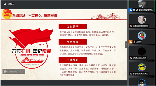 随后,在“青年不忘初心跟党走”部分,薛歆颖同学重点讲解了青年要有理想,有梦想,有奋斗,有奉献,青年是祖国的希望,是中国梦的践行者。同时,分享了十大网络真人娱乐场排名