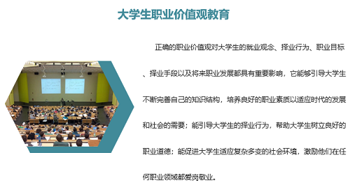 最后,刘晨老师对职业价值观进行了讲解,表示我们要确定正确的职业价值观,正确处理职业价值观与个人兴趣与特长关系,正确处理职业价值观与金钱关系,正确处理职业价值观排序与取舍问题。正确的职业价值观对大学生的就业观念、择业行为、职业目标、择业手段以及将来职业发展都具有重要影响。