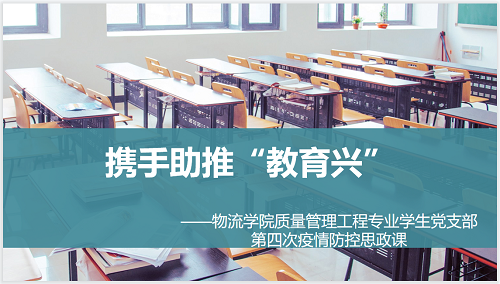 质量管理工程专业学生第一、第二党支部联合开展了第四次疫情防控思政教育活动——携手助推“教育兴”。此次疫情防控思政教育课由质量管理工程专业学生第一党支部书记刘晨主讲,质量管理工程专业第一、二党支部全体纵向管理学生参与了本次思政教育的学习。