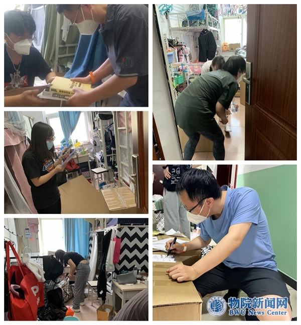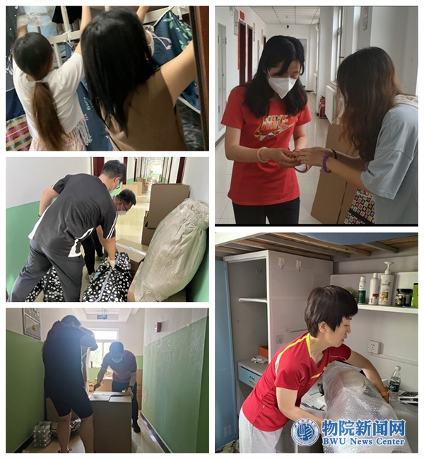 党委书记王红、院长姜旭亲自带队,各位教工支部书记、辅导员以及全体师生志愿者全身心投入到毕业生行李打包物资整理和归集装箱工作中。打包过程中,老师们全程与学生进行视频“连线”,提供点对点、一对一的打包服务,在学生的“导航”下,精准“定位”到每件物品。从个人区域的衣柜、桌面、桌下、床上开始,再到卫生间、洗漱间、阳台等公共区域,一一查找确认,保证每位学生的每件物品都有“着落”。