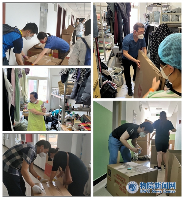 “同学,我现在要整理你柜子里的物品了,请确认。”“老师一定帮你把行李打好包。”“显示器已经给你单独打包好了,放心吧。”“同学你看,这些还是你要的物品吗?”老师和志愿者们仔细和毕业生们确认物品,认真细致为同学收拾行李。手机屏幕这端的师生就像对待自己的物品一样,精心地把每样打包物品有序规整地码放在打包箱里,手机屏幕那端的毕业生就像与家人沟通一样,放心信任地交代着每一样物品如何处理。师生志愿者与毕业生的“家人式”交流方式充分映射出了物院人、物流人之间朴素暖心的情感归属。