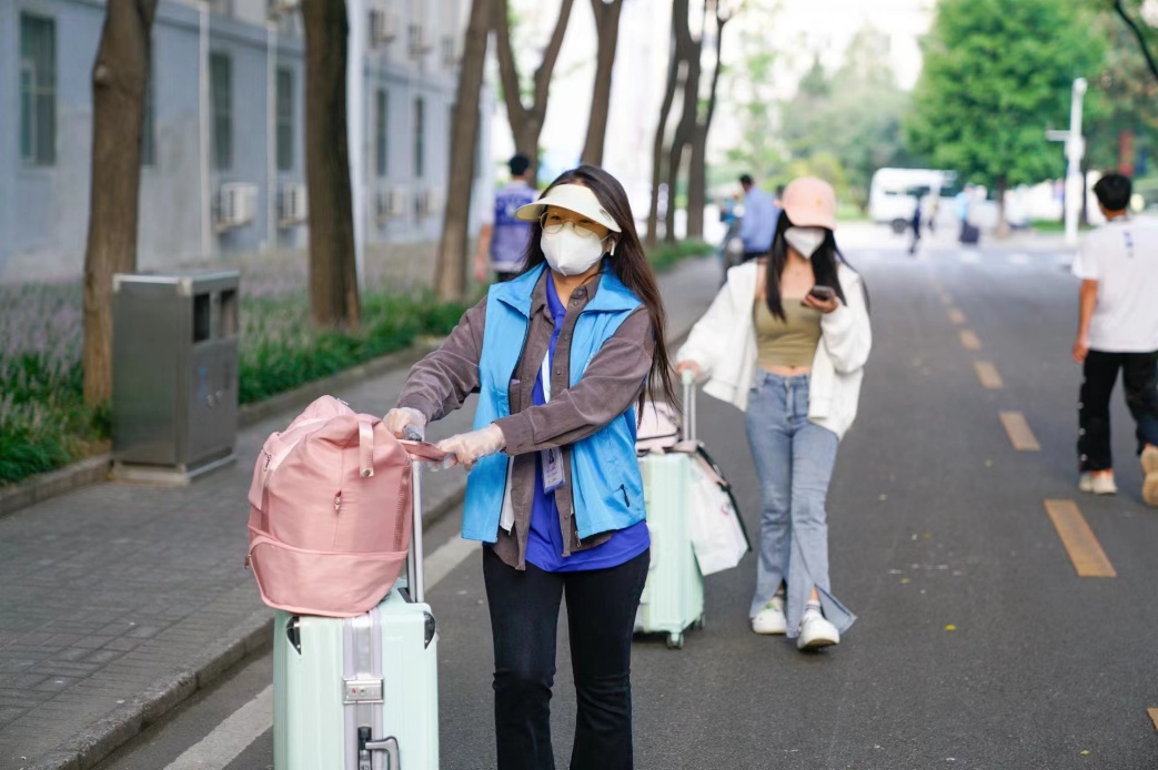 分团委学生会、研究生会成员、班级助理及迎新志愿者们在辅导员老师们的带领下,精心细致地布置着迎新现场,为迎接新生报到做最后的准备。随着新生们的陆续到来,大家各司其职,入学材料审核,文化衫、校园一卡通、防疫物资、爱心大礼包的发放等各项工作井然有序地展开。志愿者们为新生们导航校园、搬运行李、热情服务,温情相伴的场景让新同学们感受到了家的温暖。